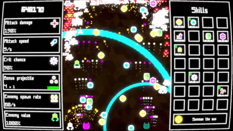 Amazing game! At first I thought the powerups would just spawn once, but then I realized it unlocked them for spawning! The only downside is the music is a bit repetitive, otherwise 10/10, great juice, great progression feeling, great powerups, I just wanted more!! Glad my font could be useful <3